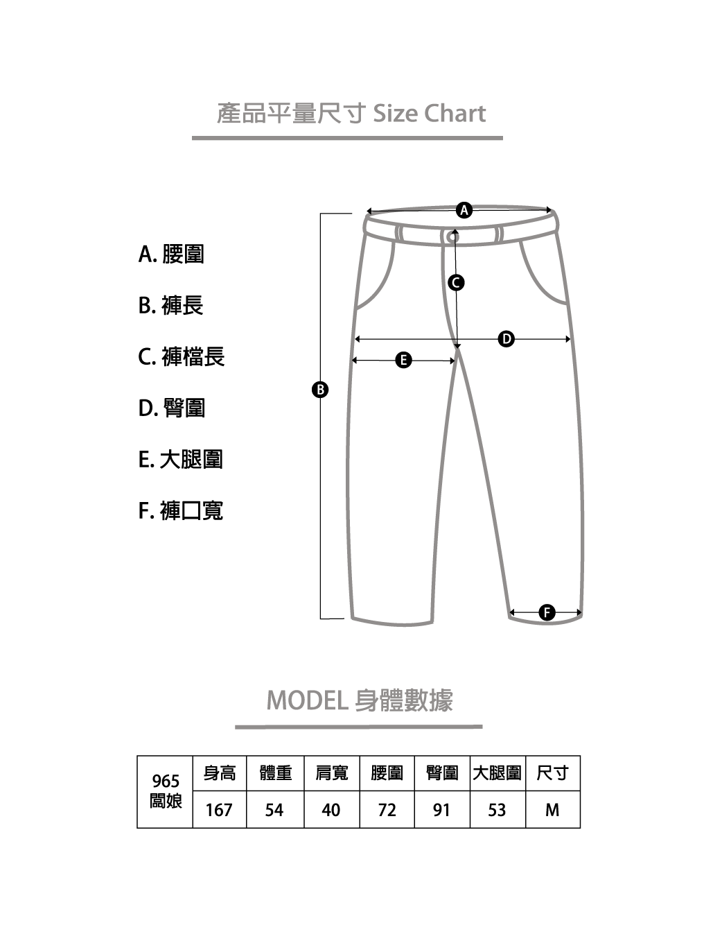 TIPS : 請大家可以拿衣櫃裡最常穿的下身做比對哦~